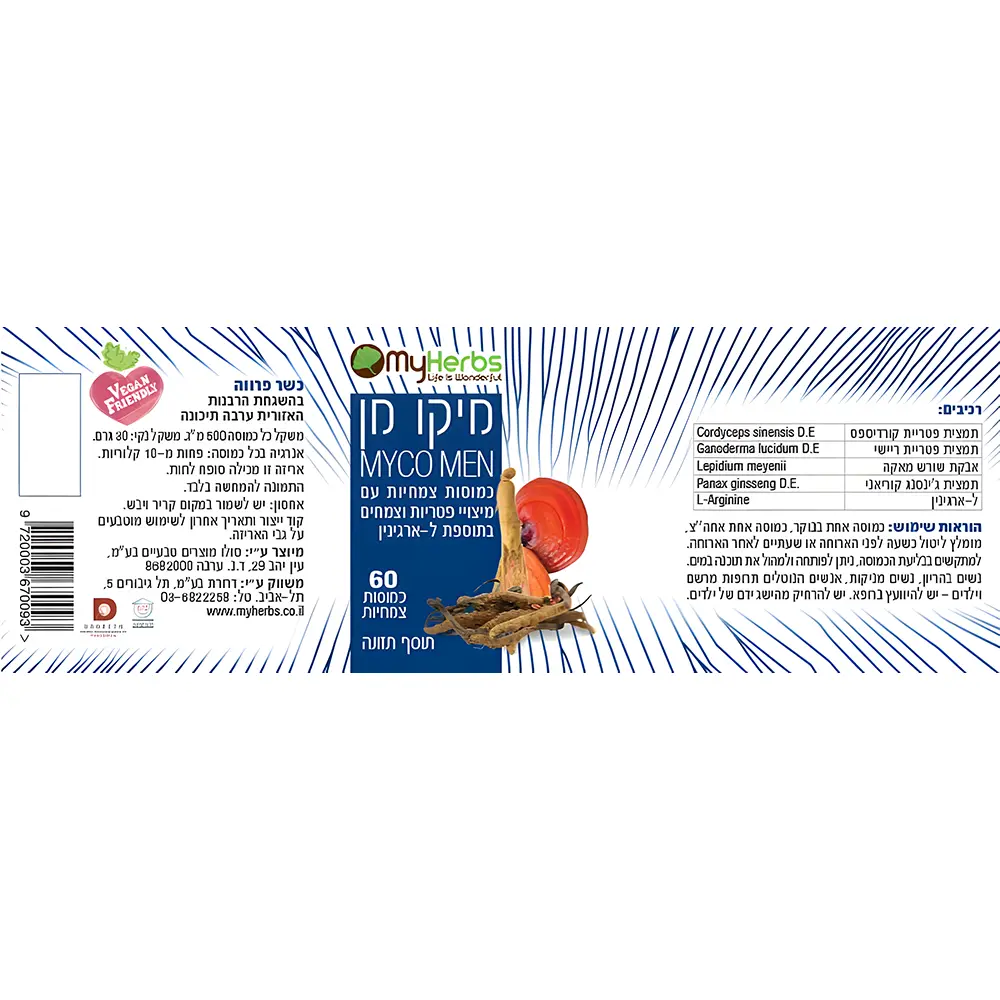 MYCO MEN est une formule conçue pour accompagner la vitalité globale de l’homme, en particulier sur le plan sexuel, vasculaire et nerveux.